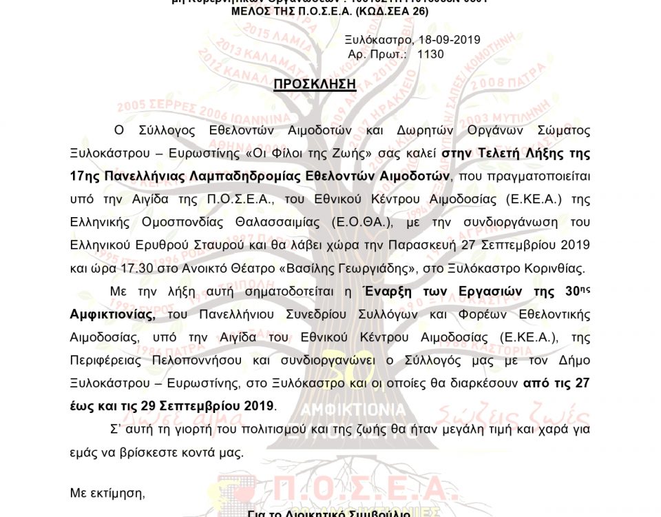 Αγαπητοί μας φίλοι, Ο Σύλλογος Εθελοντών Αιμοδοτών και Δωρητών Οργάνων Σώματος Ξυλοκάστρου Ευρωστίνης «Οι Φίλοι της Ζωής» ανέλαβε την διοργάνωση της 30ης Αμφικτιονίας μας και περιμένει […]