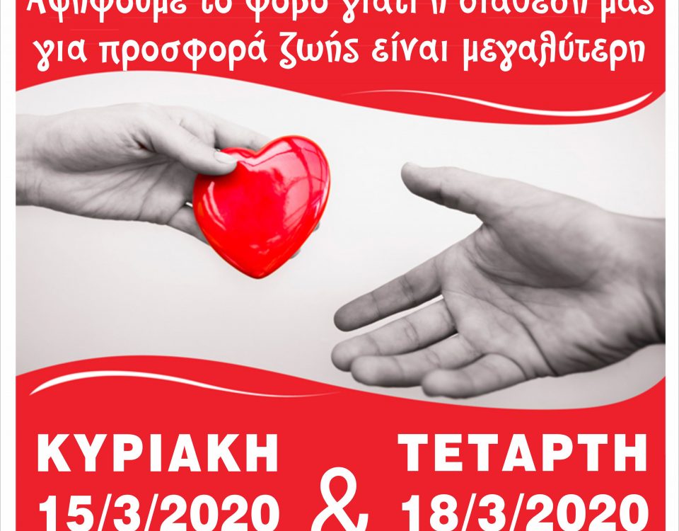 ΔΕΛΤΙΟ ΤΥΠΟΥ Σήμερα είναι αναγκαίο περισσότερο από ποτέ να συμμετάσχουμε στις Εθελοντικές Αιμοδοσίες που θα πραγματοποιήσει ο Σύλλογός μας : Την Κυριακή 15-03-2020 από 09:00 π.μ. […]